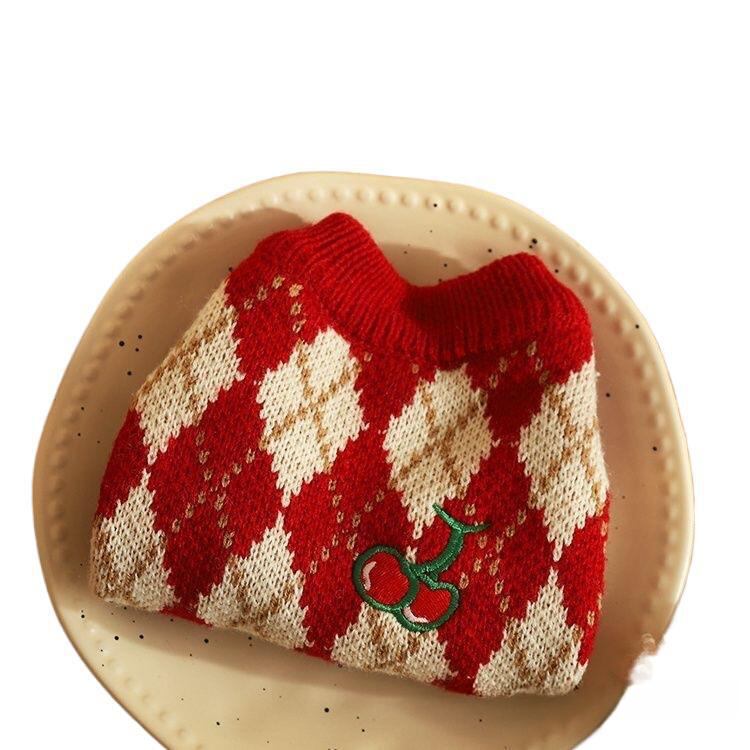 クラシックな赤と白のアーガイル柄に、ワンポイントのチェリー刺繍が愛らしい、フリル袖付きニットです。ふんわりとしたフリルと温かいニット素材が優雅でガーリーな雰囲気に演出。 クリスマスやお正月などのイベントにもぴったりの華やかさです☆