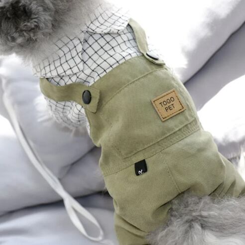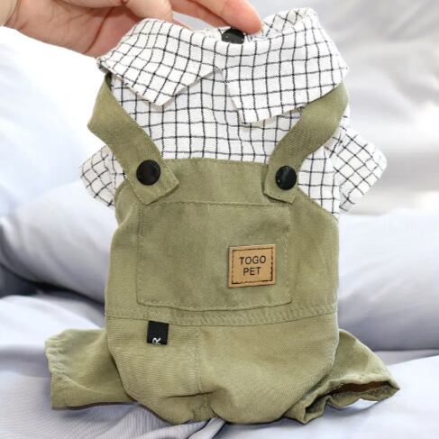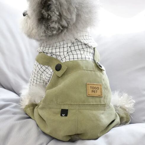 ○シャツとオーバーオールを組み合わせたようなペットウェアです。